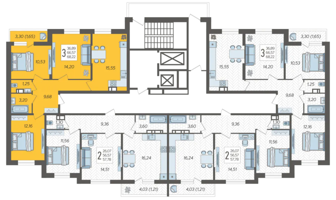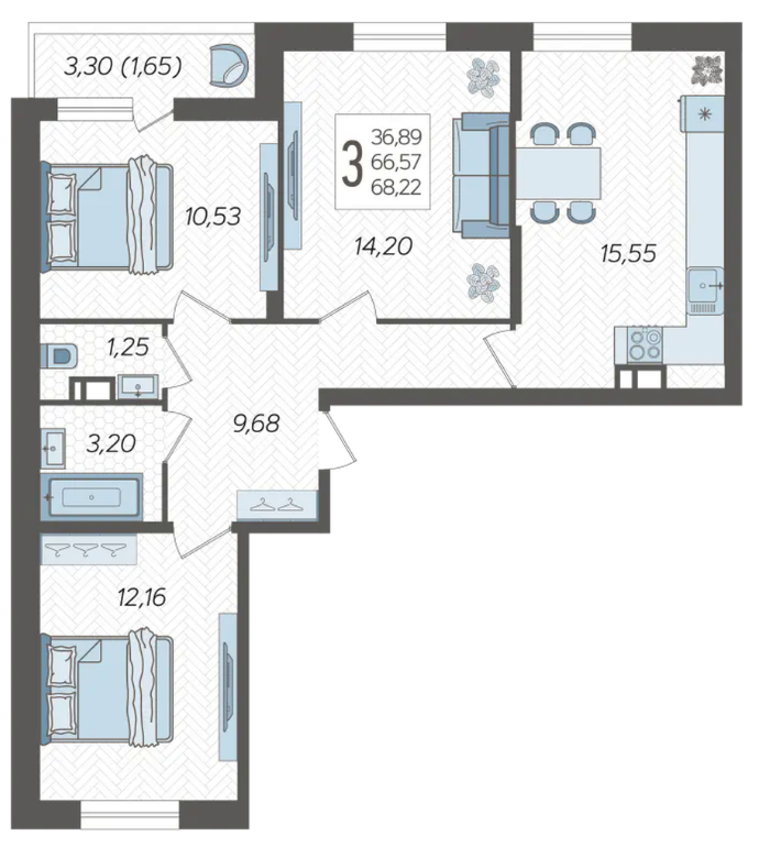 Продается 3-х комн. новостройка, 68.22 кв.м., 12/12 эт