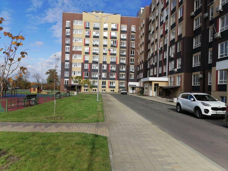Большое расстояние между домами, много места для парковки автомобилей. Двор с красочными детскими и спортивными площадками , скамейками для отдыха и зелеными кустарниками и деревьями. Здесь хочется жить приезжайте и убедитесь сами.