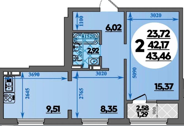Продается 2-х комн. новостройка, 43.66 кв.м., 8/8 эт