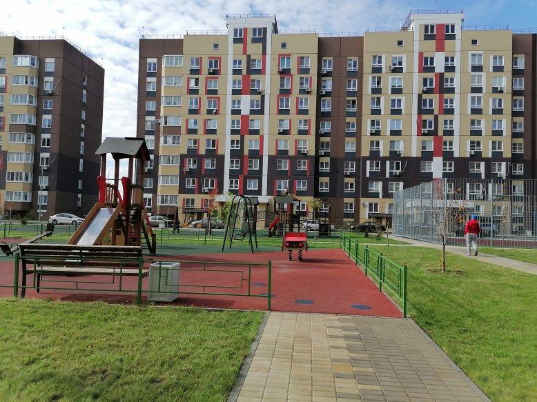 Большое расстояние между домами, много места для парковки автомобилей. Двор с красочными детскими и спортивными площадками , скамейками для отдыха и зелеными кустарниками и деревьями. Здесь хочется жить приезжайте и убедитесь сами.