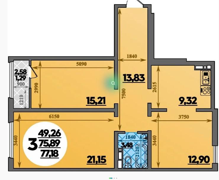 Продается 3-х комн. новостройка, 77.18 кв.м., 5/8 эт