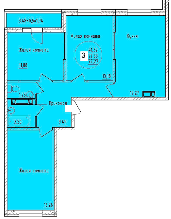 Продается 3-х комн. новостройка, 74.27 кв.м., 12/19 эт