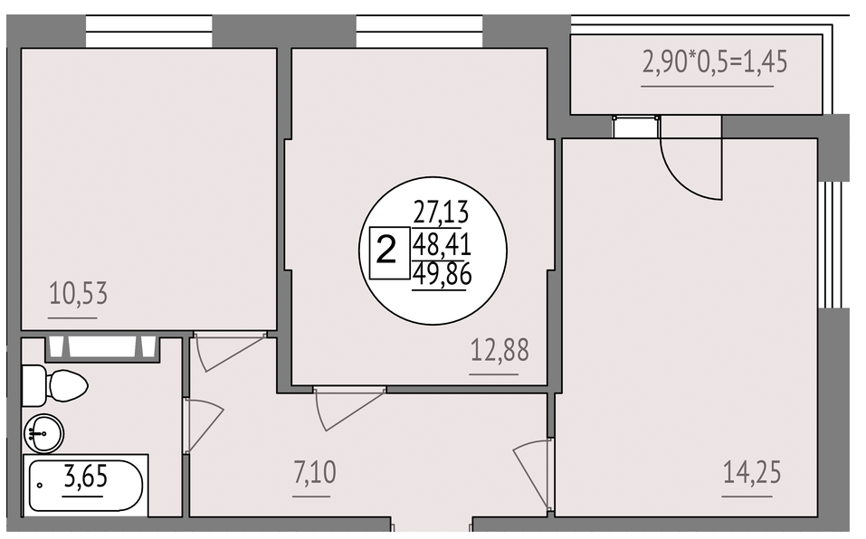 Продается 2-х комн. новостройка, 49.86 кв.м., 8/12 эт