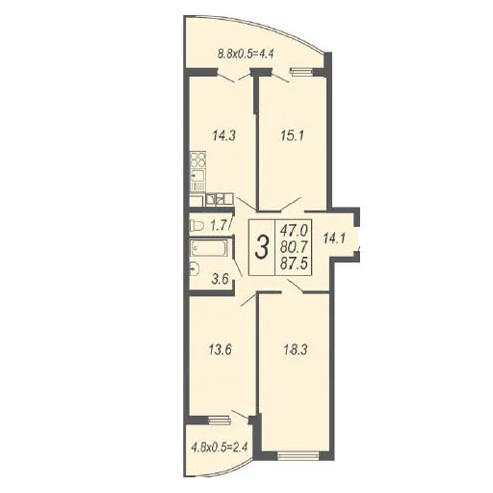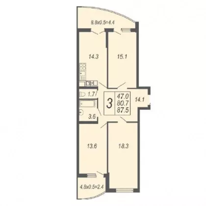 Продается 3-х комн. новостройка, 87.5 кв.м., 10/17 эт