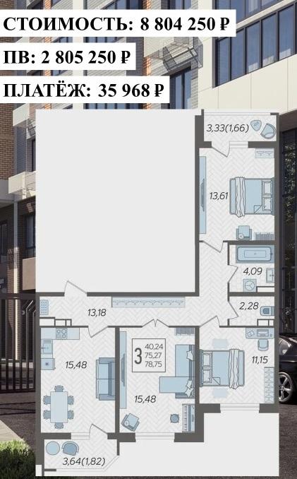 Продается 3-х комн. новостройка, 78.75 кв.м., 5/23 эт
