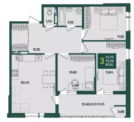 | Жилая площадь | 34.75 |