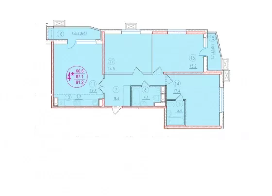 Продается 4-х комн. новостройка, 91.2 кв.м., 5/16 эт