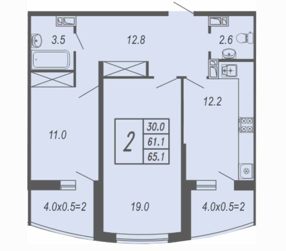 Продается 2-х комн. новостройка, 65.1 кв.м., 17/19 эт
