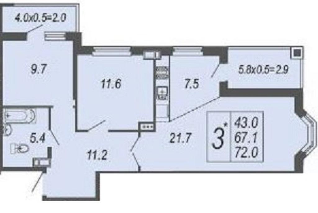 Продается 3-х комн. новостройка, 72 кв.м., 12/24 эт