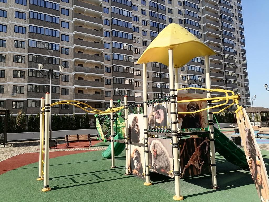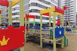Во дворе дома новая школа, сдача школы в этом году, рядом построен храм.