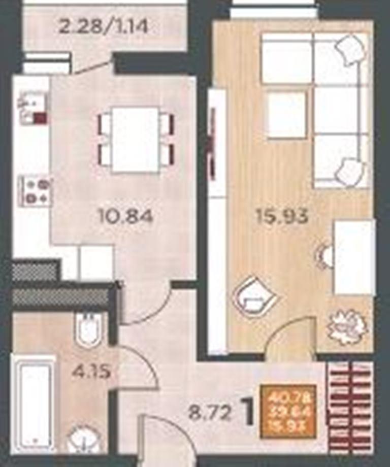 Продается однокомнатная новостройка, 41 кв.м., 17/17 эт