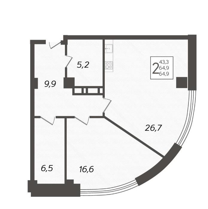 Продается 2-х комн. новостройка, 64.9 кв.м., 12/15 эт