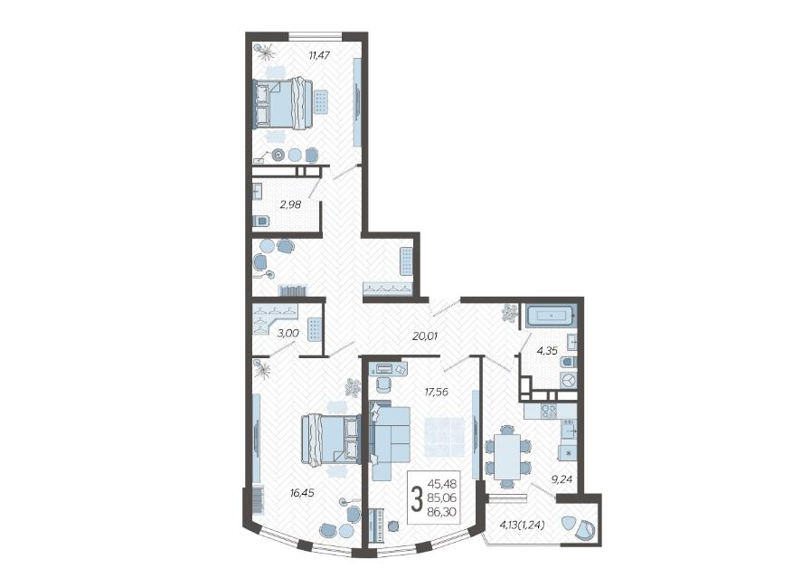 Продается 3-х комн. новостройка, 86.3 кв.м., 9/21 эт