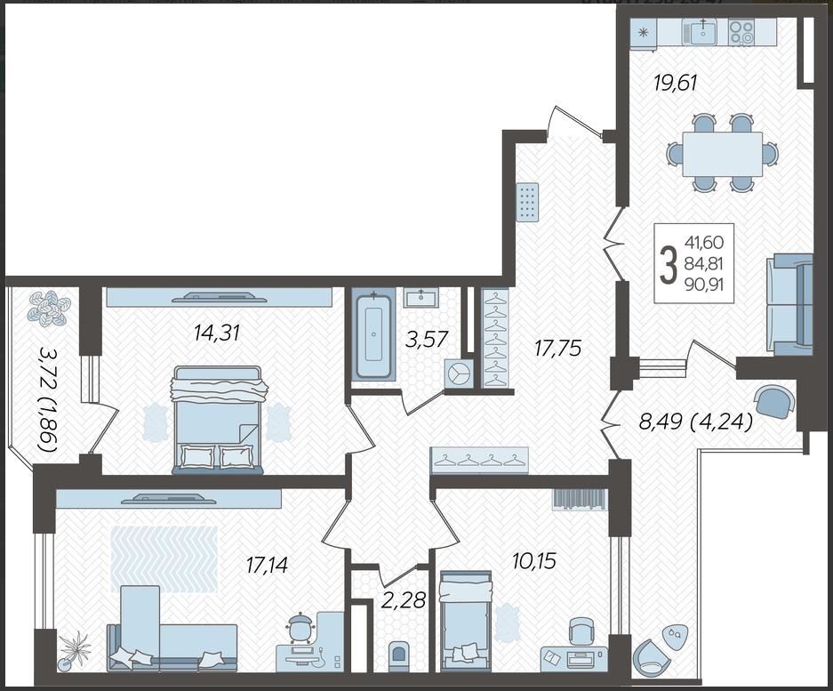Продается 3-х комн. новостройка, 90 кв.м., 15/24 эт