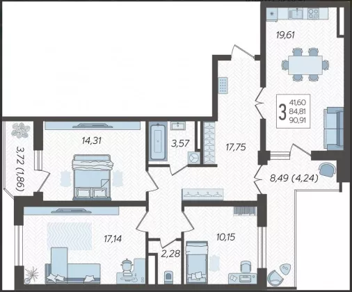 | Площадь кухни, кв.м. | 19.6 |
