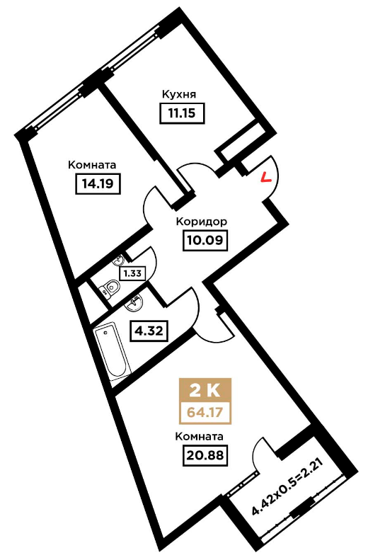 Продается 2-х комн. новостройка, 64.17 кв.м., 7/21 эт