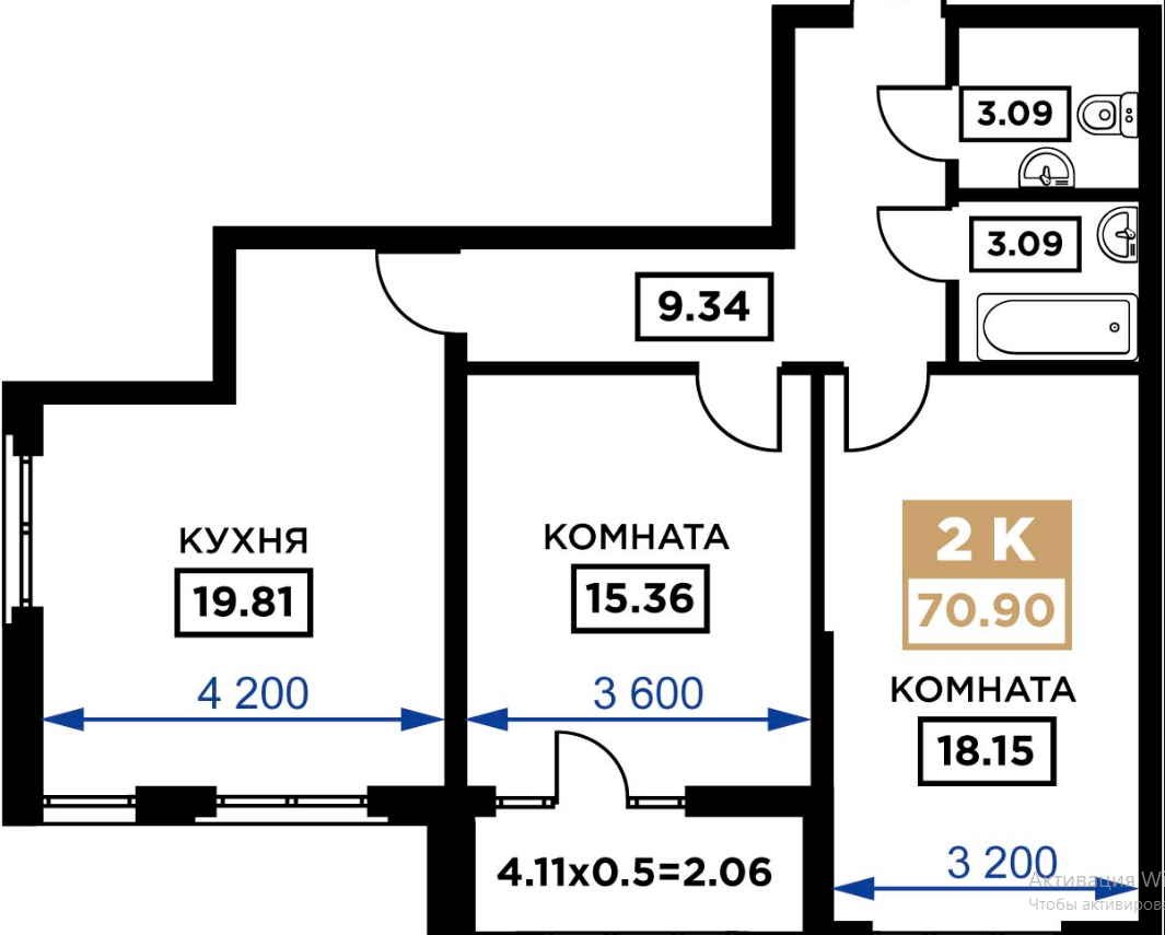 Продается 2-х комн. новостройка, 70.9 кв.м., 3/21 эт