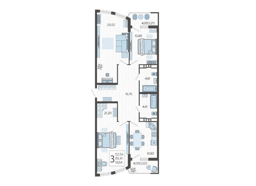 Продается 3-х комн. новостройка, 92 кв.м., 8/21 эт