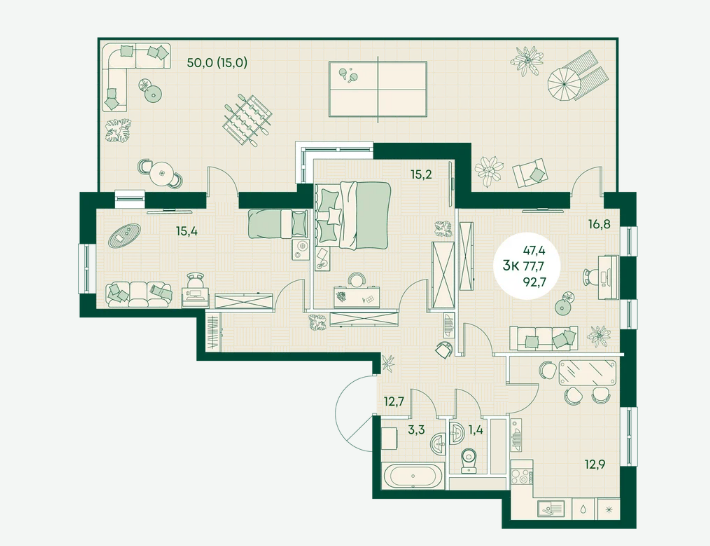 | Жилая площадь | 50 |