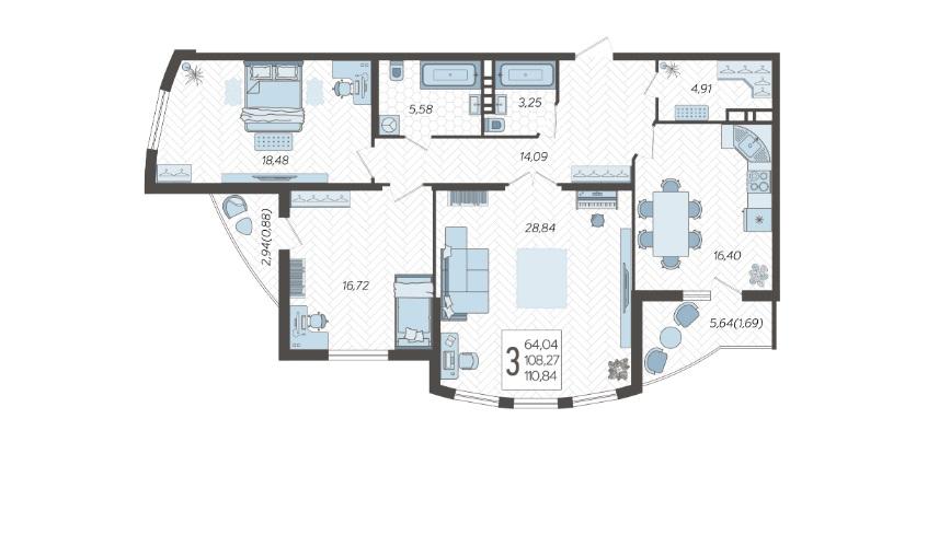 Продается 3-х комн. новостройка, 110 кв.м., 6/21 эт
