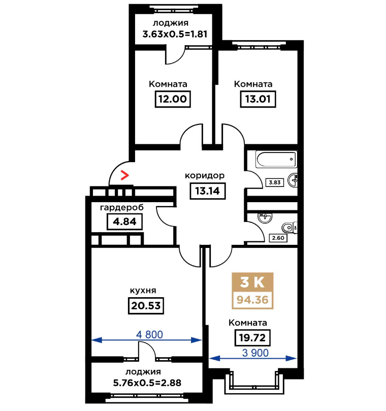 Продается 3-х комн. новостройка, 94.36 кв.м., 18/21 эт