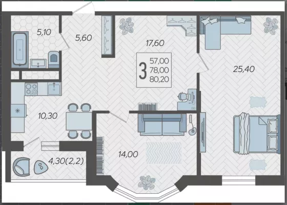 Продается 3-х комн. новостройка, 80.2 кв.м., 8/16 эт