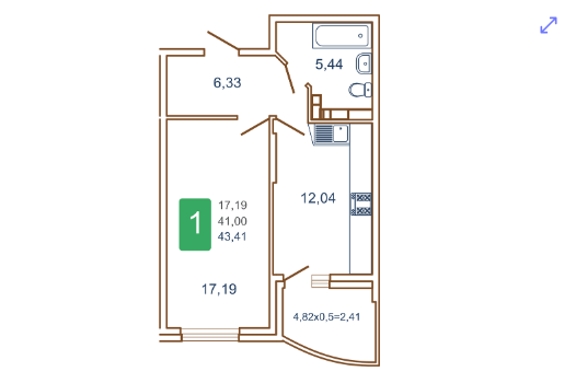 | Площадь, кв.м. | 43 |