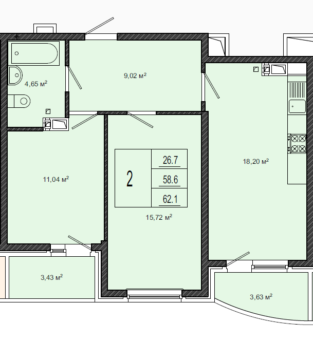 Продается 2-х комн. новостройка, 64 кв.м., 10/20 эт