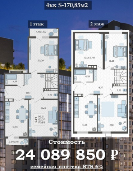 Продается 5-х комн. новостройка, 170 кв.м., 22/23 эт