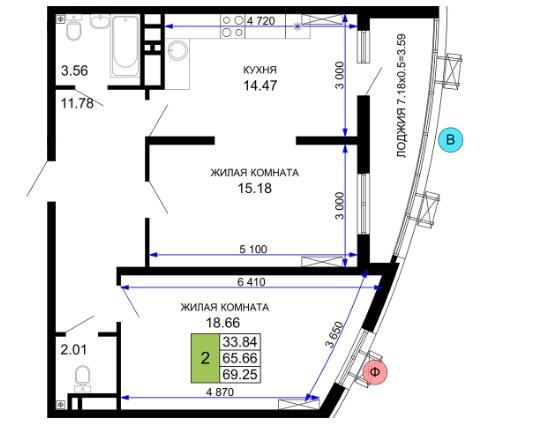 Продается 2-х комн. новостройка, 69.25 кв.м., 21/24 эт