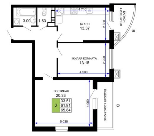 Продается 2-х комн. новостройка, 65.84 кв.м., 3/17 эт