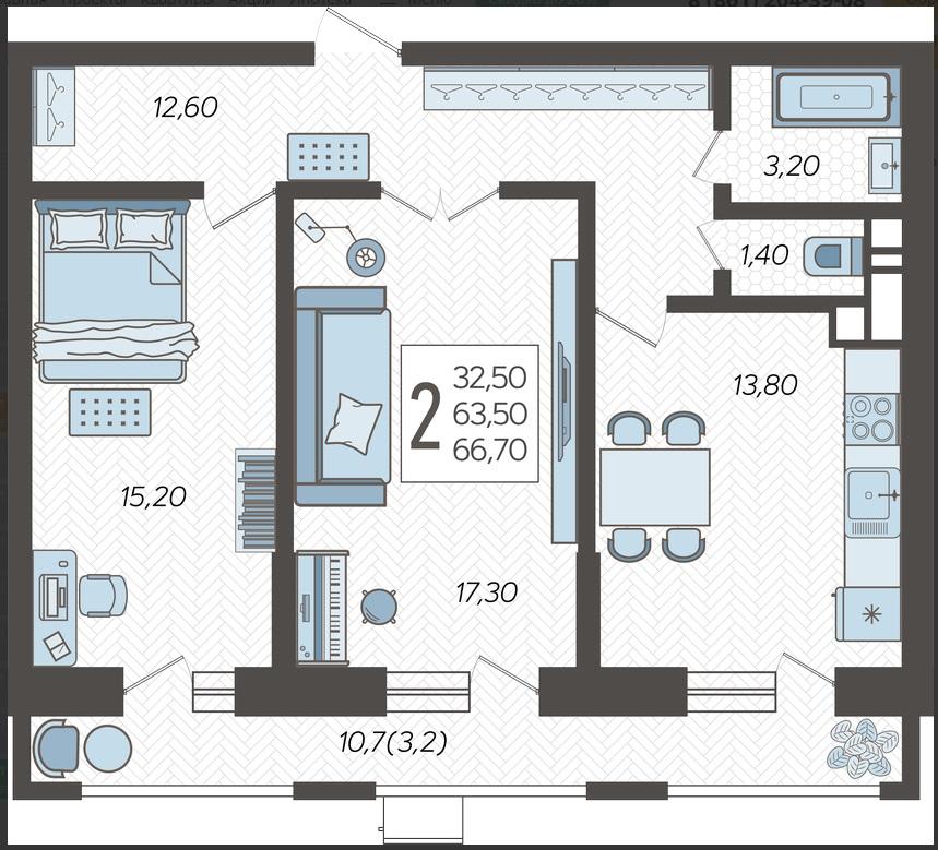 Продается 2-х комн. новостройка, 66.7 кв.м., 3/12 эт