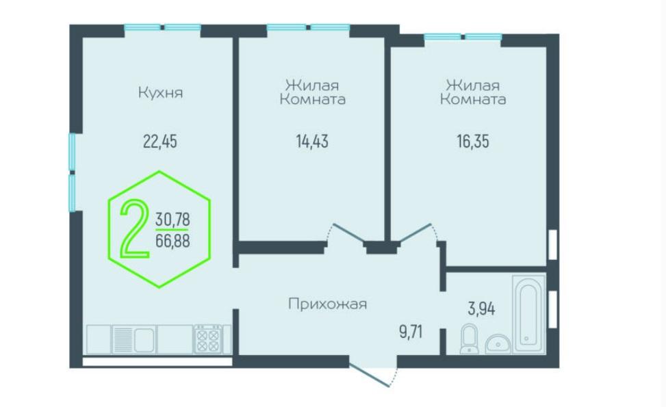 | Площадь, кв.м. | 66.88 |