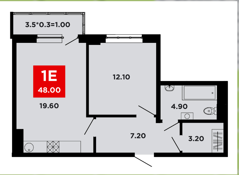 Продается однокомнатная новостройка, 48 кв.м., 2/14 эт