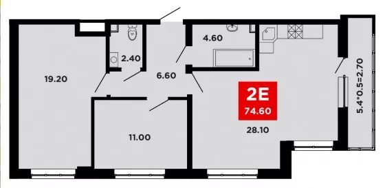 Продается 2-х комн. новостройка, 74.6 кв.м., 19/20 эт