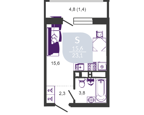 Продается Студия новостройка, 23.1 кв.м., 8/24 эт
