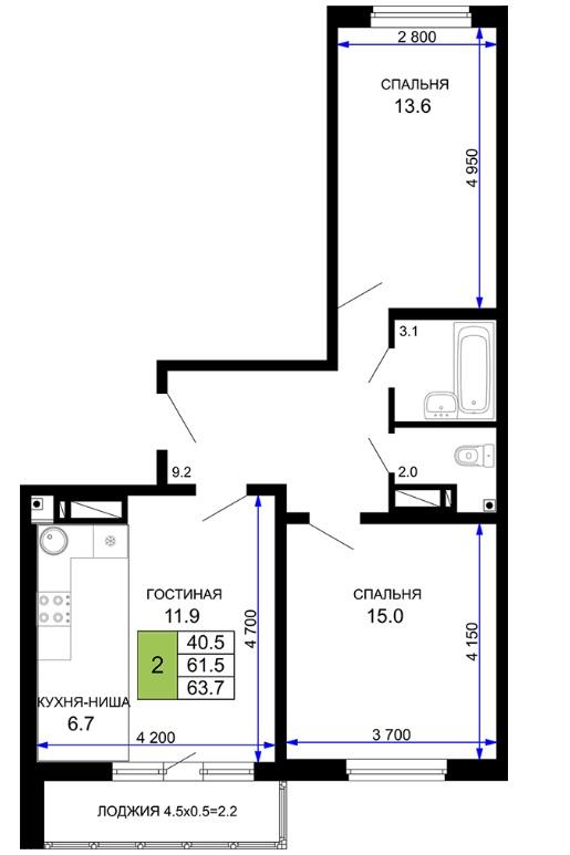 Продается 2-х комн. новостройка, 63.7 кв.м., 19/24 эт