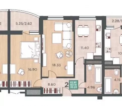 Продается 2-х комн. новостройка, 62.8 кв.м., 7/17 эт