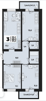 Продается 3-х комн. новостройка, 68.3 кв.м., 5/5 эт