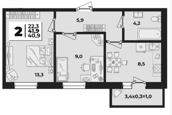 Продается 2-х комн. новостройка, 41.9 кв.м., 5/5 эт