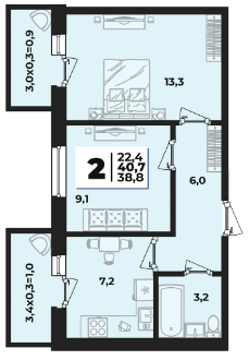 | Площадь, кв.м. | 40.7 |