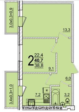 Продается 2-х комн. новостройка, 40.7 кв.м., 1/5 эт