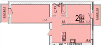 Продается 2-х комн. новостройка, 53.6 кв.м., 4/5 эт