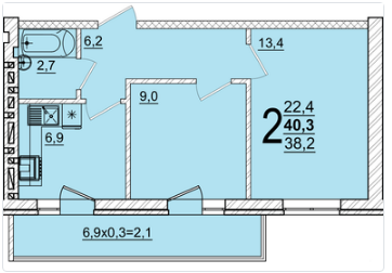Продается 2-х комн. новостройка, 40.3 кв.м., 5/5 эт