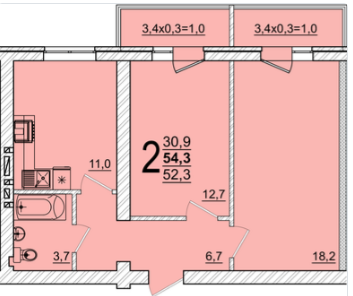 Продается 2-х комн. новостройка, 54.3 кв.м., 4/5 эт
