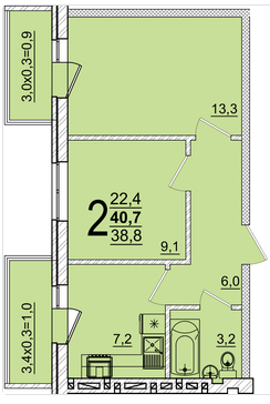 | Площадь, кв.м. | 40.7 |
