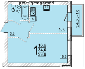 | Площадь, кв.м. | 34.6 |