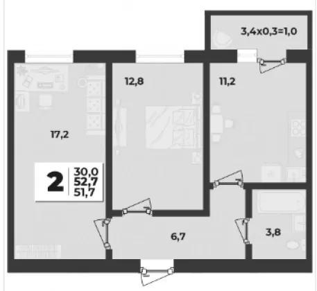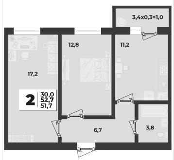 Продается 2-х комн. новостройка, 52.7 кв.м., 5/5 эт