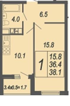 Продается однокомнатная новостройка, 38.1 кв.м., 7/19 эт