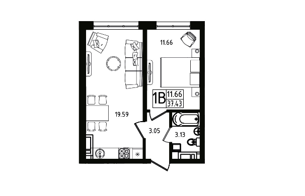 Продается однокомнатная новостройка, 37 кв.м., 14/16 эт